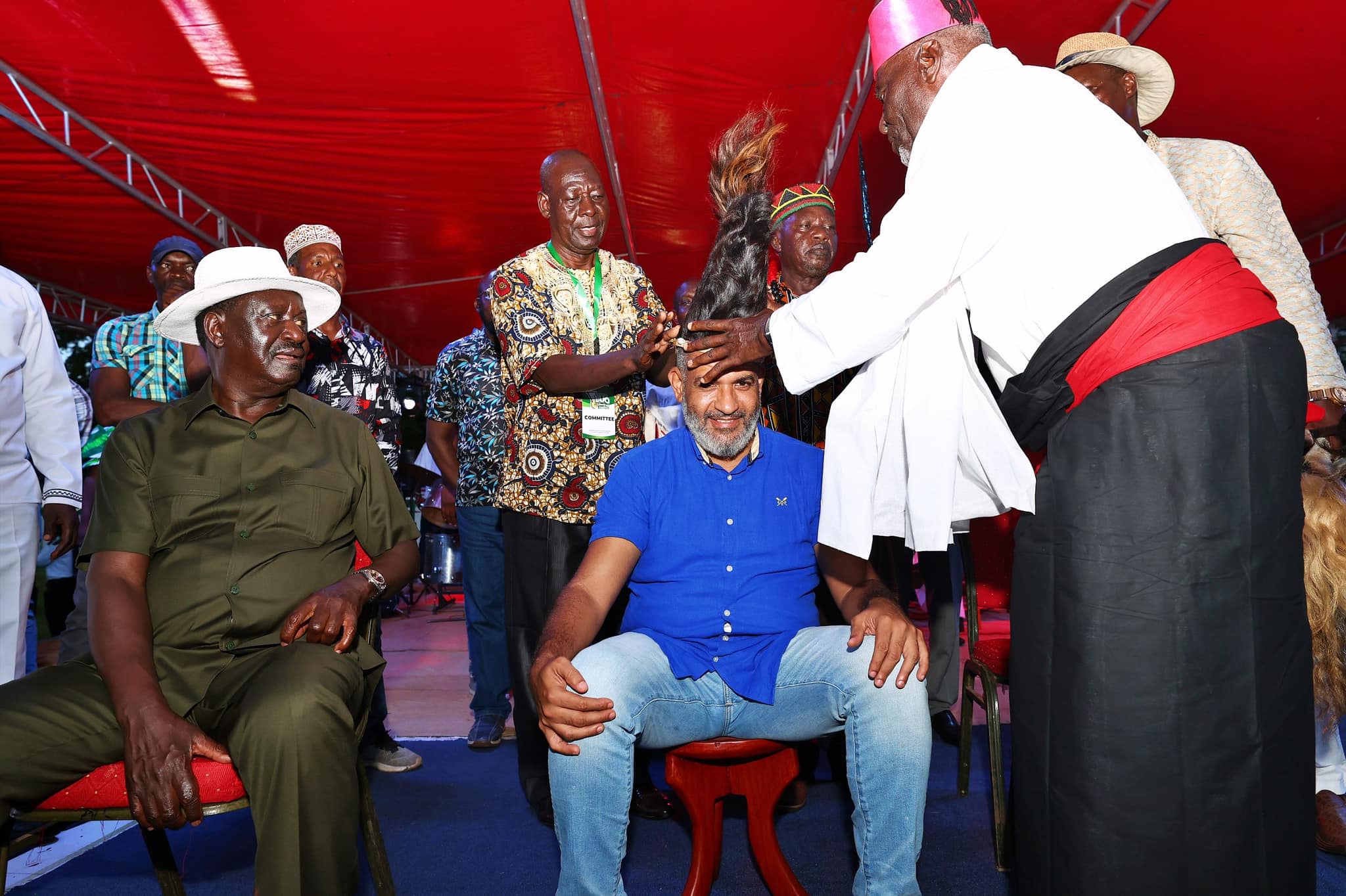 Nassir ambaye alipatiwa jina la “Omondi Jabondo” alivishwa mavazi kamili ya mzee wa jamii ya Luo pamoja na ngao na mkuki.