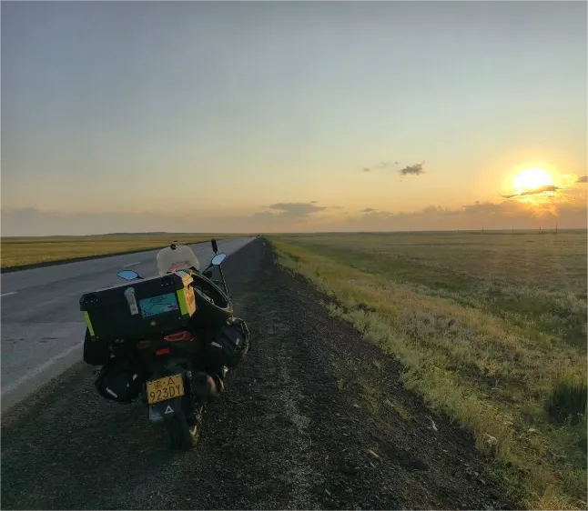 Kazakhstan ilikuwa kituo chake cha kwanza, ambako aliweka rekodi ya siku yake ndefu zaidi ambayo ilikuyuwa kilomita 700 ndani ya saa 10, kwa sababu ya barabara laini na mandhari wazi. Alipitia mataifa ya Urusi, Georgia, Türkiye, Kroatia, Italia, Ujerumani, Austria, na zaidi, akafika Ufaransa tarehe 7 Agosti. Safari ya kurudi ikafuata njia tofauti ya kilomita 15,000, na gharama jumla zikikadiriwa kufikia yuan 80,000.