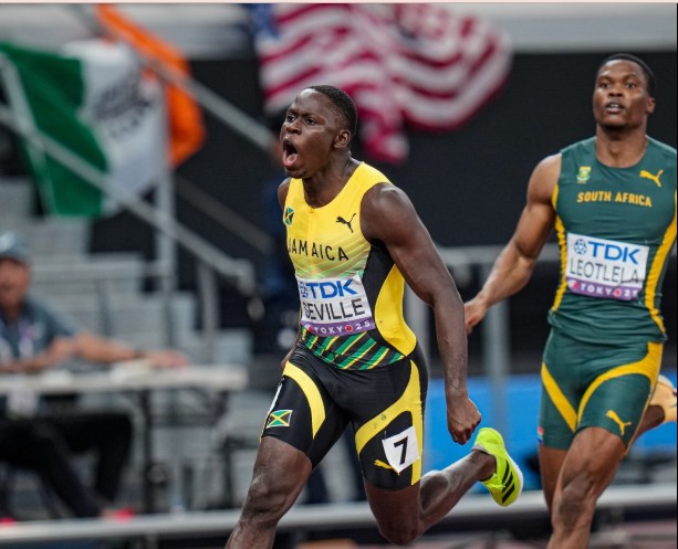 Seville alinyanyakua dhahabu ya mita 100 kwa wanaume ikiwa taji ya kwanza ya Jamaica baada ya miaka 10, akiziparakasa kwa sekunde 9.77.
